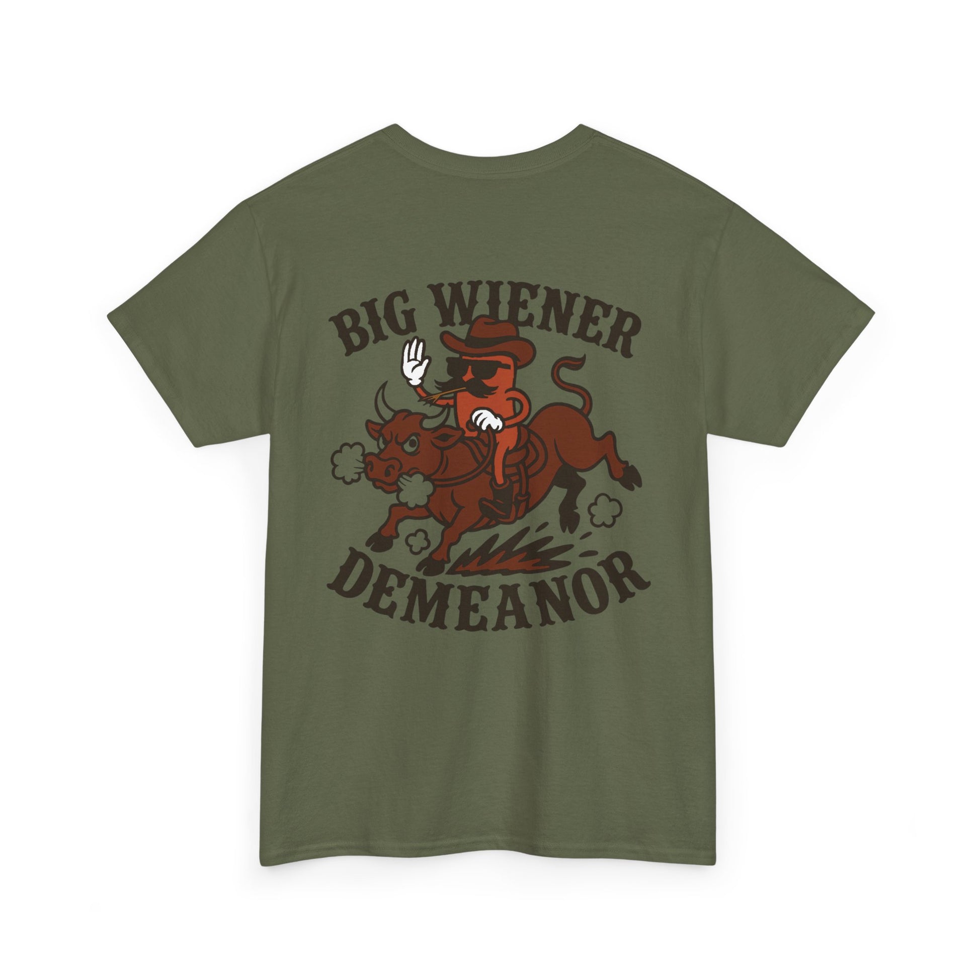If you ain't got no giddy, then giddy up and get yourself a Big Cowboy Wiener Demeanor tee. Ideal for you bucking a bale of hay, rewatching Yellowstone, or reeling in a lunker. Develop your best southern drawl, don a cowboy hat and boots, and hit the town with a thirst for Miller Lite, yeehaw.